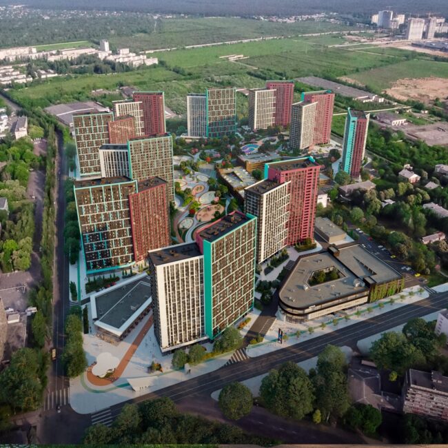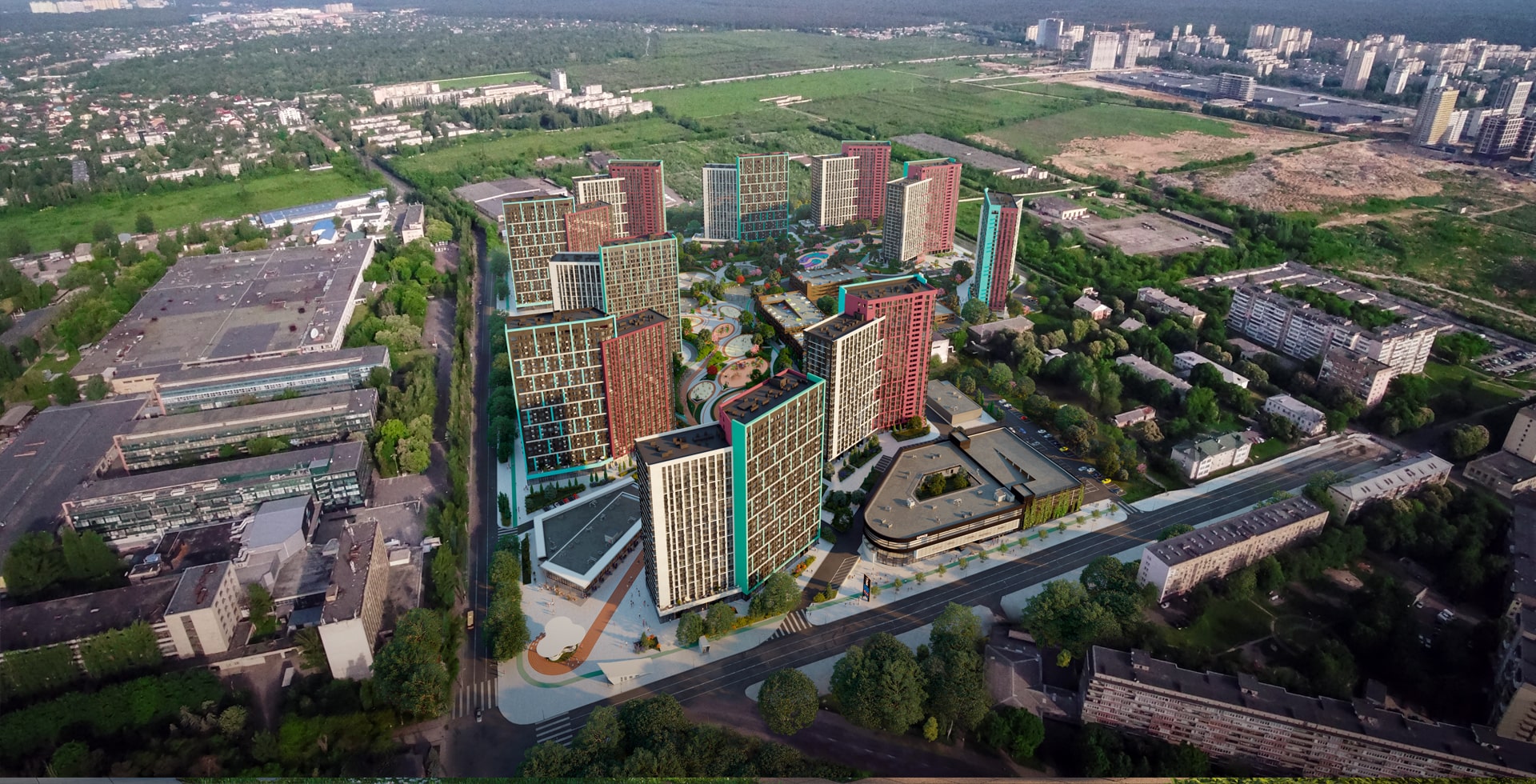 Це цілий мікрорайон з власною інфраструктурою та парковою зоною. Будинки комплексу розподілені по системі відкритих кварталів: зручна навігація по території, ніяких «колодязів» та закритих просторів, хороший рівень інсоляції у квартирах завдяки куту повороту будівель відносно один одного.
