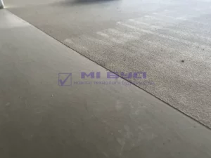 - Проводиться підготовка основи, включаючи фрезерування, шліфування, заделування тріщин, очищення та нанесення ґрунтовки.